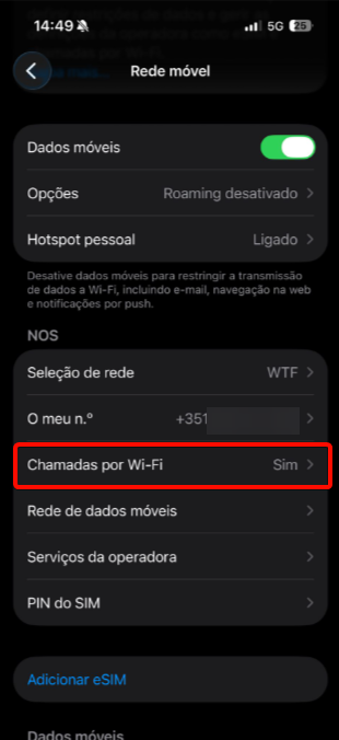 - Operadora móvel com suporte VoWiFi ativado (MEO, NOS, Vodafone)